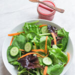 This fruity raspberry vinaigrette sala dressing gets its beautiful rich red color from raspberries. A hint of Dijon mustard gives it just the right touch of tartness.